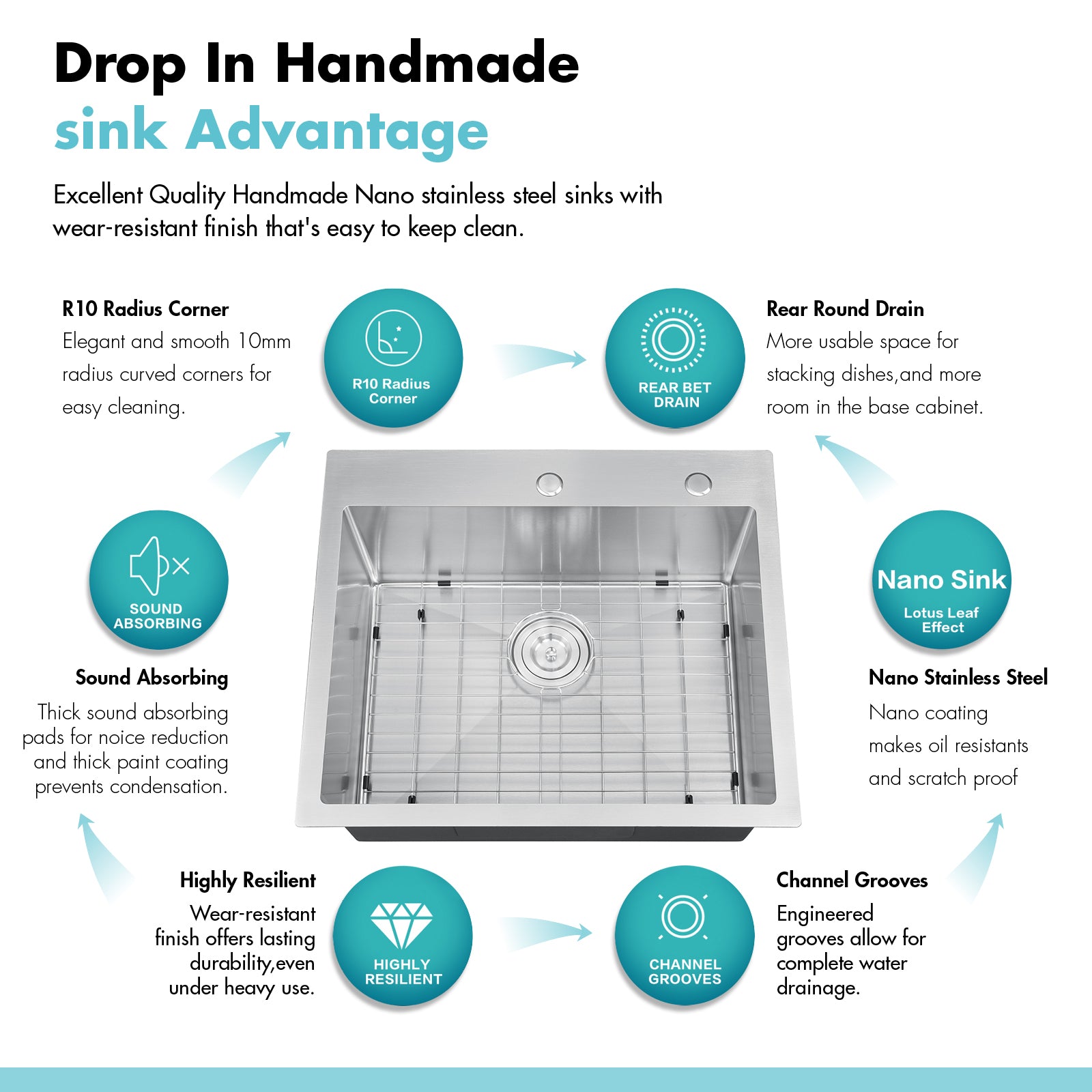 This sink is designed for drop in installation, creating a seamless look with your countertop and making cleaning easier—just wipe crumbs directly into the sink.