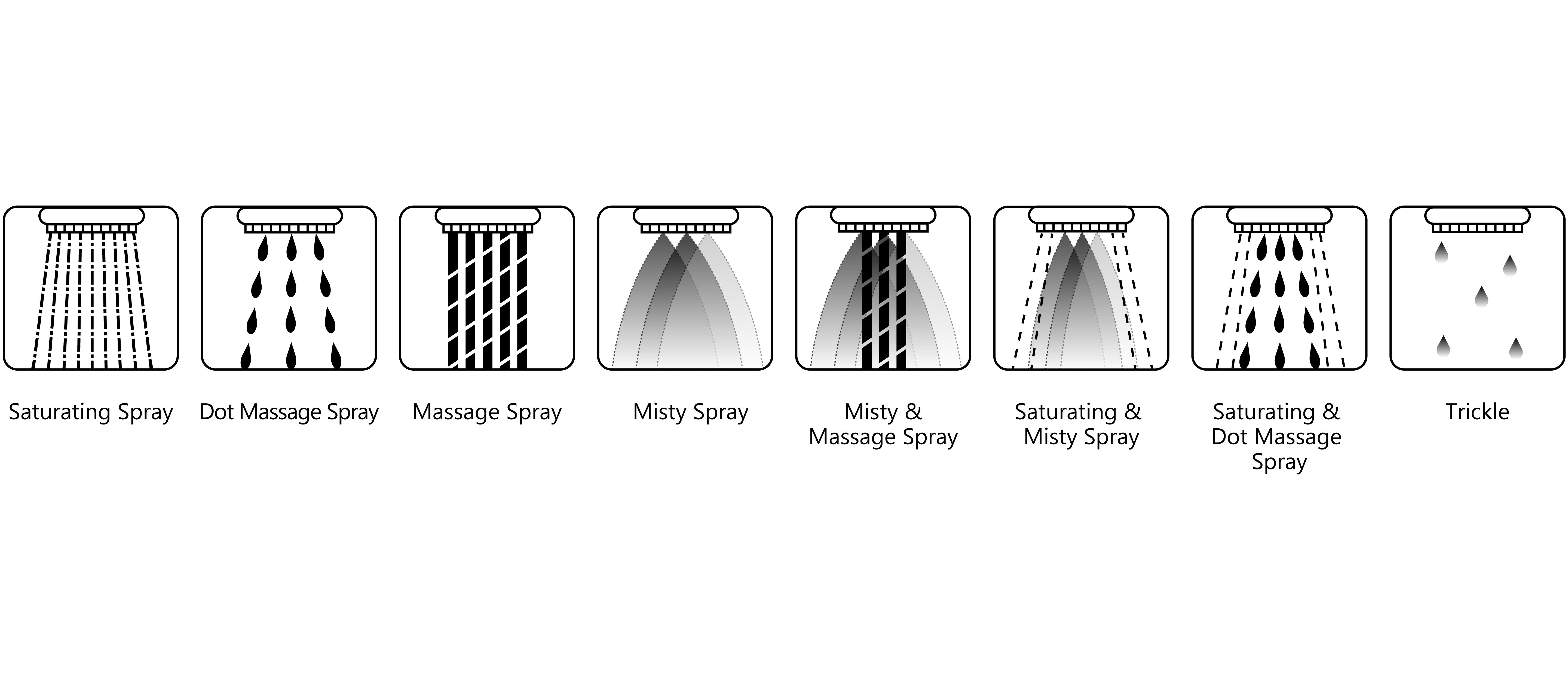 Spray Modes: Saturating Spray, Dot Massage Spray, Massage Spray, Mist Spray, Mist &Massage Spray, Saturating& Mist Spray, Saturating& Dot Massage Spray, Trickle